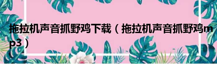 拖拉机声音抓野鸡下载(拖拉机声音抓野鸡mp3)