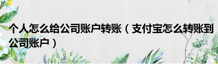 个人怎么给公司账户转账(支付宝怎么转账到公司账户)