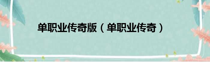 大家好,小东方来为大家解答以上的问题。单职业传奇版,单职业传奇这个很多人还不知道,现在让我们一起来看看吧!