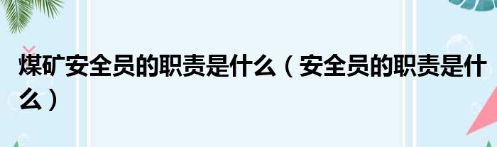 煤矿安全员的职责是什么(安全员的职责是什么)