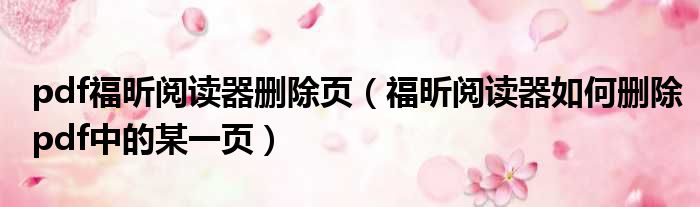 pdf福昕阅读器删除页(福昕阅读器如何删除pdf中的某一页)
