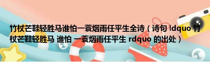 竹杖芒鞋轻胜马谁怕一蓑烟雨任平生全诗(诗句 ldquo 竹杖芒鞋轻胜马 谁怕 一蓑烟雨任平生 rdquo 的出处)