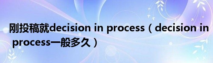 刚投稿就decision in process(decision in process一般多久)
