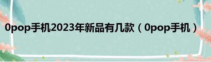 大家好,小东方来为大家解答以上的问题。0pop手机2023年新品有几款,0pop手机这个很多人还不知道,现在让我们一起来看看吧!