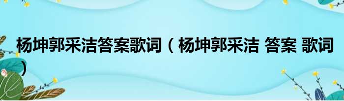 杨坤郭采洁答案歌词(杨坤郭采洁 答案 歌词)
