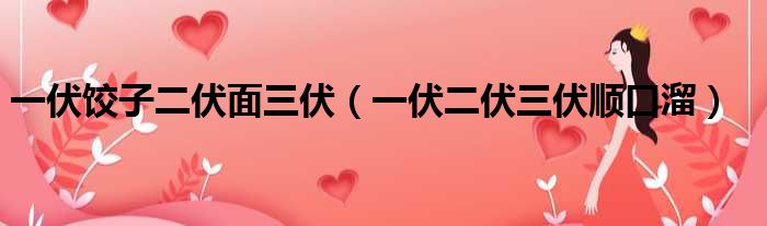 大家好,小东方来为大家解答以上的问题。一伏饺子二伏面三伏,一伏二伏三伏顺口溜这个很多人还不知道,现在让我们一起来看看吧!