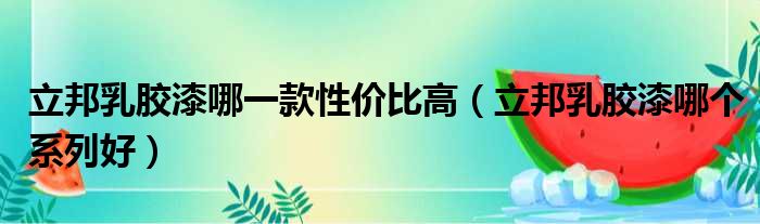 立邦乳胶漆哪一款性价比高(立邦乳胶漆哪个系列好)