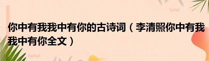 你中有我我中有你的古诗词(李清照你中有我我中有你全文)