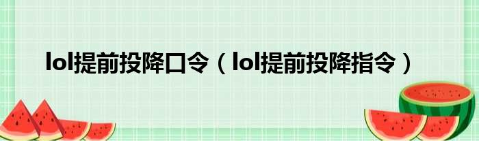 导读 大家好,小东方来为大家解答以上的问题。lol提前投降口令,lol提前投降指令这个很多人还不知道,现在让我们一起来看看吧!1、lol提前投降命令