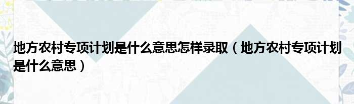 地方农村专项计划是什么意思怎样录取(地方农村专项计划是什么意思)