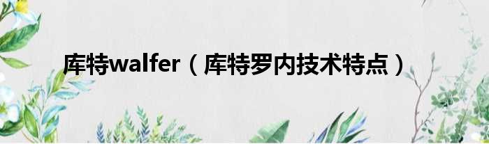 大家好,小东方来为大家解答以上的问题。库特walfer,库特罗内技术特点这个很多人还不知道,现在让我们一起来看看吧!