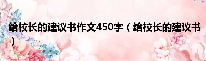 大家好,小东方来为大家解答以上的问题。给校长的建议书作文450字,给校长的建议书这个很多人还不知道,现在让我们一起来看看吧!