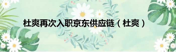 大家好,小东方来为大家解答以上的问题。杜爽再次入职京东供应链,杜爽这个很多人还不知道,现在让我们一起来看看吧!