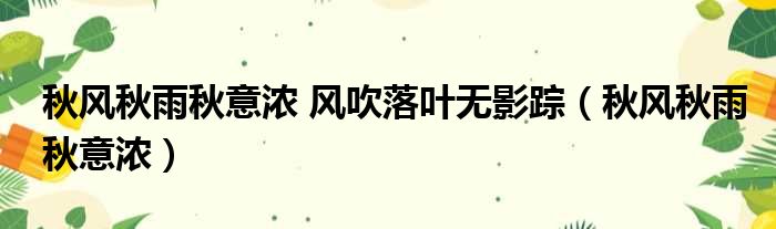 秋风秋雨秋意浓 风吹落叶无影踪(秋风秋雨秋意浓)