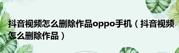 抖音视频怎么删除作品oppo手机(抖音视频怎么删除作品)