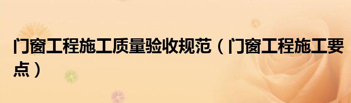 门窗工程施工质量验收规范(门窗工程施工要点)