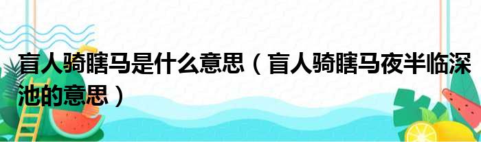 盲人骑瞎马是什么意思(盲人骑瞎马夜半临深池的意思)