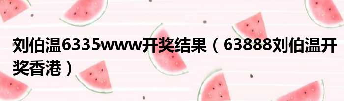 刘伯温6335www开奖结果(63888刘伯温开奖香港)