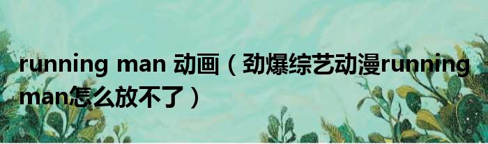 导读 大家好,小东方来为大家解答以上的问题。running man 动画,劲爆综艺动漫running man怎么放不了这个很多人还不知道,现在让我们一起来看看
