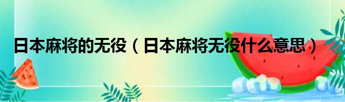大家好,小东方来为大家解答以上的问题。日本麻将的无役,日本麻将无役什么意思这个很多人还不知道,现在让我们一起来看看吧!