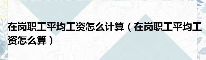 在岗职工平均工资怎么计算(在岗职工平均工资怎么算)