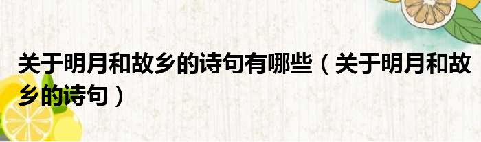 关于明月和故乡的诗句有哪些(关于明月和故乡的诗句)