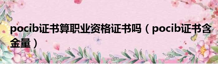 pocib证书算职业资格证书吗(pocib证书含金量)