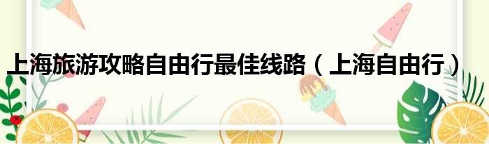 大家好,小活来为大家解答以上问题。上海旅游攻略自由行最佳线路,上海自由行很多人还不知道,现在让我们一起来看看吧!