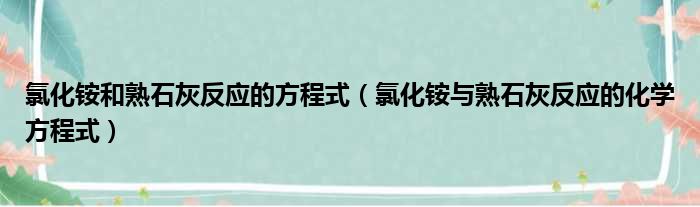 氯化铵和熟石灰反应的方程式(氯化铵与熟石灰反应的化学方程式)