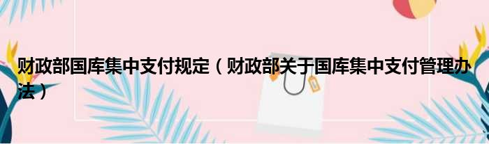 财政部国库集中支付规定(财政部关于国库集中支付管理办法)