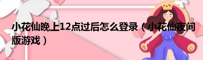 大家好,小东方来为大家解答以上的问题。小花仙晚上12点过后怎么登录,小花仙夜间版游戏这个很多人还不知道,现在让我们一起来看看吧!