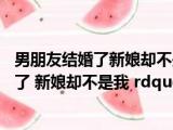 大家好,小东方来为大家解答以上的问题。男朋友结婚了新娘却不是我歌词的含义,ldquo 男朋友结婚了 新娘却不是我 rdquo 这句歌词出自哪 浏览全文>>