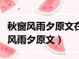 大家好,小东方来为大家解答以上的问题。秋窗风雨夕原文在电视剧红楼梦第几回,秋窗风雨夕原文这个很多人还不知道,现在让我们一起来看看吧! 浏览全文>>