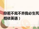大家好,小东方来为大家解答以上的问题。你若不离不弃我必生死相依的英语,你若不离不弃我必生死相依英语这个很多人还不知道,现在让我们一起 浏览全文>>