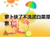 大家好,小东方来为大家解答以上的问题。萝卜快了不洗泥白菜滞了剥层皮,萝卜快了不洗泥是什么意思这个很多人还不知道,现在让我们一起来看看 浏览全文>>