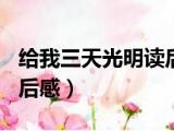 大家好,小东方来为大家解答以上的问题。给我三天光明读后感800字,给我三天光明读后感这个很多人还不知道,现在让我们一起来看看吧!1、假如 浏览全文>>