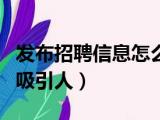 大家好,小东方来为大家解答以上的问题。发布招聘信息怎么写吸引人,招聘信息怎么写吸引人这个很多人还不知道,现在让我们一起来看看吧!1、 浏览全文>>