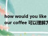 大家好,小东方来为大家解答以上的问题。how would you like your coffee?,How do you like your coffee 可以理解为How would 浏览全文>>