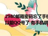 大家好,小东方来为大家解答以上的问题。2980邮箱密码忘了手机号换了,2980邮箱QQ怎样改 忘记以前QQ号了 有手机绑定这个很多人还不知道,现 浏览全文>>