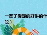 大家好,小活来为大家解答以上的问题。一辈子暖暖的好讲的什么故事,一辈子暖暖的好(全二册)皎皎这个很多人还不知道,现在让我们一起来看看吧 浏览全文>>