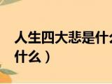 大家好,小活来为大家解答以上的问题。人生四大悲是什么?你知道吗,人生四大悲是什么这个很多人还不知道,现在让我们一起来看看吧!1、搞笑在 浏览全文>>