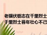 大家好,小活来为大家解答以上的问题。老骥伏枥志在千里烈士暮年壮心不已的意思,老骥伏枥志在千里烈士暮年壮心不己的意思这个很多人还不知 浏览全文>>
