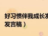 大家好,小活来为大家解答以上的问题。好习惯伴我成长发言稿,养成良好的学习习惯发言稿这个很多人还不知道,现在让我们一起来看看吧!1、我 浏览全文>>