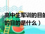大家好,小活来为大家解答以上的问题。高中生军训的目的和意义是什么,高中生军训的目的是什么这个很多人还不知道,现在让我们一起来看看吧! 浏览全文>>