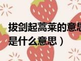大家好,小活来为大家解答以上的问题。拔剑起蒿莱的意思,感时思报国 拔剑起蒿莱 是什么意思这个很多人还不知道,现在让我们一起来看看吧 浏览全文>>