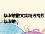 大家好,小活来为大家解答以上的问题。毕淑敏散文集精选摘抄,藏在这世界的优美 毕淑敏最新散文毕淑敏这个很多人还不知道,现在让我们一起来 浏览全文>>