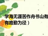 大家好,小活来为大家解答以上的问题。学海无涯苦作舟书山有路勤为径书法,学海无涯苦作舟书山有路勤为径这个很多人还不知道,现在让我们一起 浏览全文>>