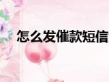 大家好,小活来为大家解答以上的问题。怎么发催款短信大全,催款短信怎么写这个很多人还不知道,现在让我们一起来看看吧!1、希望有所帮助!!! 浏览全文>>