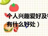 大家好,小活来为大家解答以上的问题。个人兴趣爱好及特长,个人有兴趣 爱好特长有什么好处这个很多人还不知道,现在让我们一起来看看吧!1 浏览全文>>
