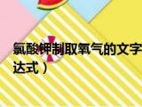 大家好,小活来为大家解答以上的问题。氯酸钾制取氧气的文字表达式为,氯酸钾制取氧气的文字表达式这个很多人还不知道,现在让我们一起来看看 浏览全文>>